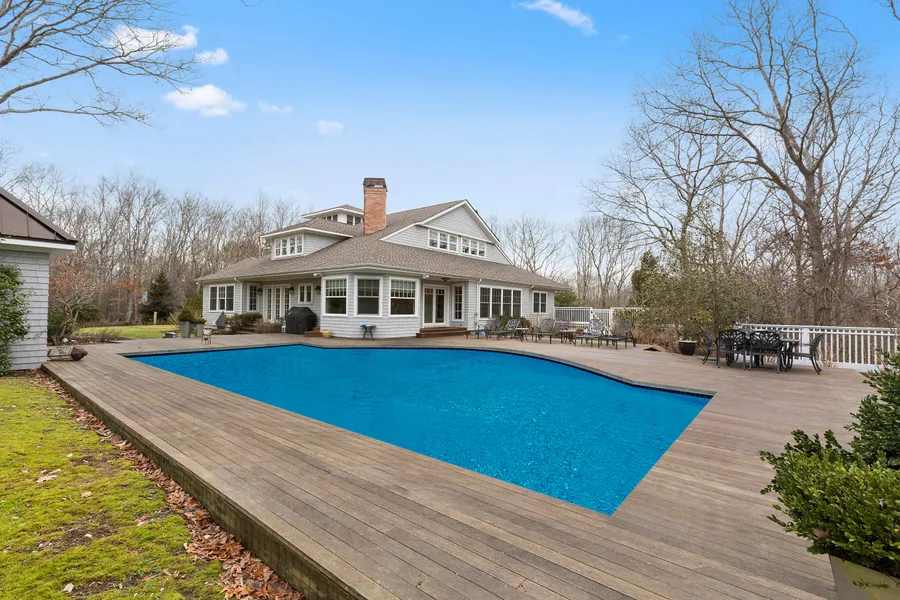 Available for August. This three-story, five-bedroom home has been completely renovated with a breathtaking attention to detail. Two stone pillars welcome you to a winding path that leads to beautifully landscaped 2+ acres that boast a 20x40 Gunite pool as well as basketball and tennis courts. The interior design of the house is magnificent, featuring double-height ceilings, master ensuite, living room, formal dining room, media room, office, and a chef-quality eat-in kitchen with marble counters and a central island -- all on the first floor! The grand stairway leads to four bedrooms on the second and third floors. A full basement offers a second media room for additional living or entertaining. Restaurants, marinas, bays, shopping and everything else Sag Harbor has to offer are just minutes away.