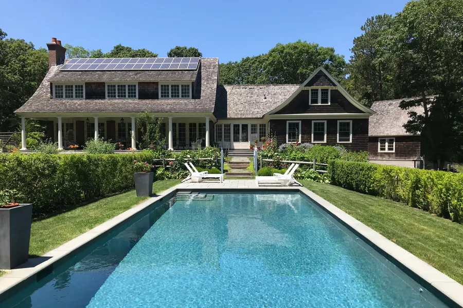 Wonderful blend of indoor outdoor living in this 4 bedroom, 3.5 bath home with tranquil gardens, heated gunite pool, pool house, outdoor shower, covered porches for dining and entertaining, and beautiful furnishings throughout. Master bedroom has a spacious window dressing room suitable for use as a summer office. The fabulous pool house features a full bathroom including indoor shower, kitchenette with an under counter refrigerator/freezer with ice maker and a drawer dishwasher. Also available weekly from 05/30/2021 - 09/06/2021 for $21,700.