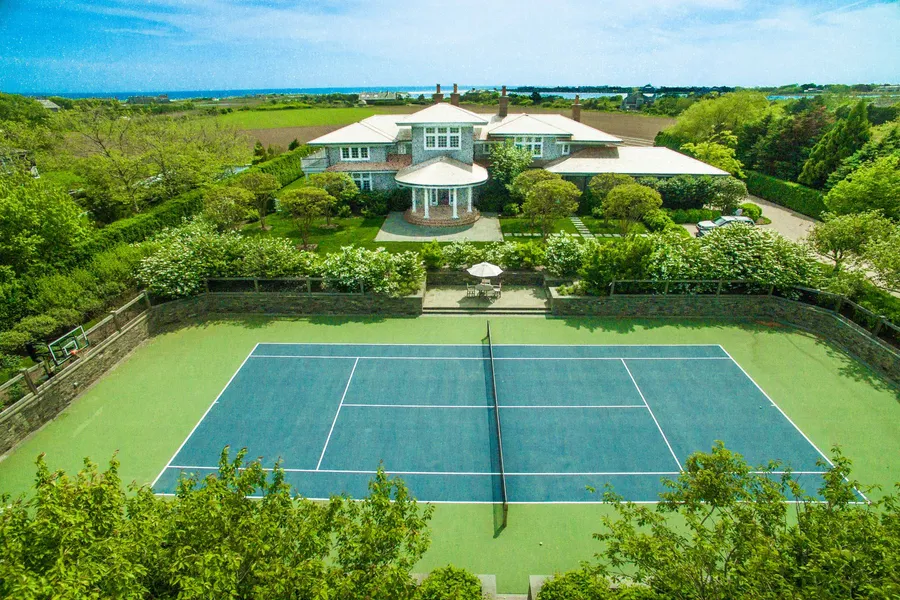 Stunning panoramic ocean and pond views that span a 23 acre reserve instantly captivate from this unique Sagaponack estate setting. Located on a quiet cul-de-sac, simply a direct 1/2 mile to Sagg Main beach, enjoy spontaneous access to the ocean. The Interior has four bedrooms with expansion approval for eight, five baths, office, two dens, three fireplaces and a finished lower level. Soaring ceilings of 21 feet with glass doors and windows invite in the flow of abundant natural light with Southwest exposure for fabulous sunsets, ocean, pond and reserve views. The waterside 50 foot swimming pool holds ocean views over the expansive field and is surrounded by multiple stone patios, second floor balconies and lush green lawns. Specimen trees with lavish gardens infuse color and ensure intimate privacy. The sunken all weather tennis court enclosed with stacked stone and landscaped for priva...