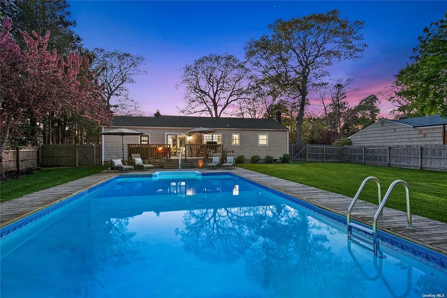 Welcome to summer on Sunset Ave! This immaculately renovated coastal-style beach house with designer touches in the village of Westhampton Beach is now available for purchase. The kitchen has new stainless steel appliances and an open airy floor plan. There are beautiful hardwood floors throughout and a wood-burning fireplace. The dining room has French doors leading to a wrap-around deck overlooking the large pool. Situated on a private, fenced professionally landscaped half-acre of land, this 3 bedroom, 1 bath newly renovated beach house has all the amenities one needs to relax! The home is 1 mile from Rogers Beach and less than half of a mile to Main Street, where you will find world-class shopping, restaurants, and places of worship. Home is available furnished.