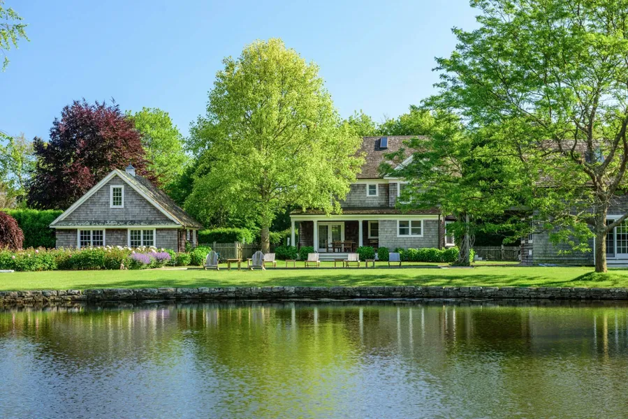 Nestled behind mature hedges in the heart of Sagaponack South, this classic farm house offers old world charm and a sense of tranquility rarely found today. Set on over 2 acres, the main 3500+/- sq ft house and additional studio frame and highlight an exquisite pond surrounded by magnificent specimen trees, and enchanting plantings, ensuring flowers from early spring through fall. Captivating gardens feature antique roses, masses of peonies and gorgeous hydrangeas from every vantage point. The lush landscape provides countless alcoves, openings and benches for peaceful contemplation, inspiration and serenity. The main house includes 4 bedrooms and 3.5 baths on three floors, a living room with French doors leading to a covered deck and dining room also with French doors. A chef's kitchen, with Viking stove and Sub Zero refrigerator, offers easy access to the covered deck and an adjoining ...