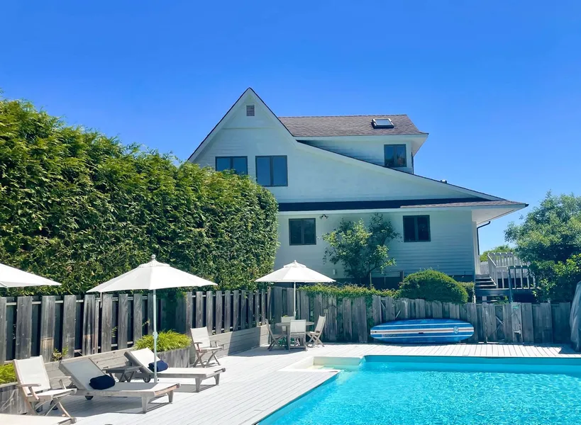 This spacious and pristine 3-bedroom home offers views of the ocean and Fort Pond with an unbelievably private and central location. The tree-top water views are captivating whether grilling on the wrap-around deck, enjoying the chef's dream kitchen, or relaxing in the grand and cheerful living space. Amenities include a second-floor primary bedroom suite with sitting area and ocean views, exquisite quartz kitchen counter tops and island, top-of-the-line fixtures and appliances, wood-burning pizza oven and dramatic living room with double height ceilings and fireplace. The heated pool gets full sun all day and is surrounded by beautifully landscaped gardens offering lots of privacy. This retreat is a standout in every way, nestled on a hilltop, and just a short distance to the heart of Montauk and ocean beaches. Two adjacent vacant parcels of land also available for purchase to create a ...