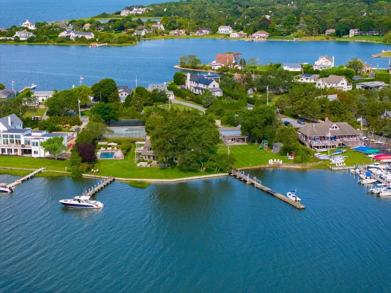 An unparalleled opportunity awaits. A chance to secure a South of the Highway waterfront 2-lot compound with tennis that defines the pinnacle of waterfront living. This exceptional offering unveils not just one, but two magnificent waterfront properties, seamlessly combined across 1.8+/- acres of prime Southampton landscape. Delight in the rarity of owning dual private docks, granting you unparalleled access to boating and fishing adventures. From the moment you step into this enchanting estate, you'll be captivated by the allure of boundless possibilities and the serenity of waterfront living. The first residence, situated on approximately an acre of prime waterfront land on 170+/- ft. of waterfrontage, presents a stunning 4-bedroom home adorned with lavish amenities including 2 living areas, fireplace, up to date kitchen, dining area, and multiple viewing decks. Overlooking the tranqui...