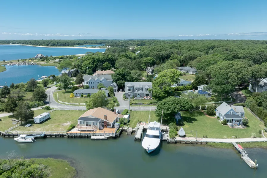 This stunning Nantucket-style cedar shake residence, nestled in the coveted community of Laughing Waters in Southold, is an exceptional retreat for boating enthusiasts and those who cherish waterfront living. Situated on a meticulously curated .25-acre property, this home boasts an additional .25-acre waterfront lot across the road, (Dis:1000 Block:300 Sec:8700 Lot:55000) featuring a private boat basin capable of accommodating up to three boats or a 66' yacht. The unique permit for private dredging ensures 7' of water at low tide, providing unparalleled access and ease for maritime activities. The home itself is in pristine condition, with a generous open floor plan that flows seamlessly into a new, state-of-the-art kitchen equipped with architectural windows that frame the breathtaking views of the bay, boats, and docks. The added main floor room, currently a recreational space, can be transformed into a luxurious main floor master suite. The panoramic views from every corner of this house celebrate the stunning bay, enhancing the tranquil feel of a true beach house. Beyond the luxury of a private dock, residents of Laughing Waters enjoy access to a private beach, enhancing this already exclusive offering. This property is not just a home; it's a lifestyle choice, offering scarce opportunities to house a 60' motor boat right in your front yard. This is a once-in-a-lifetime opportunity to own a slice of paradise, where the joys of beachfront and boating lifestyles converge in one exquisite setting.