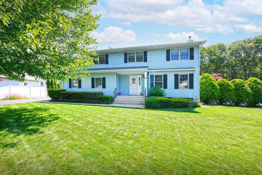 This spacious 4 bedroom, 2.5 bath Colonial with a 2 car garage and full basement sits on just shy of 3/4 acre. It is surrounded by all beautiful homes on the Hamlet of Old Medford. Architectural roof, gutters and leaders are 5 years young. Newer oil burner,2 zone central air and 3 zone heat. THis sun drenched home has been well loved by one family. Mrs. Clean lives here!