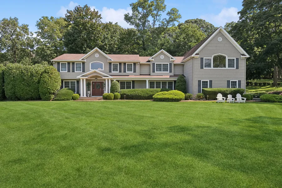 *Coming Soon* Beautifully Renovated Colonial on 1 Verdant Acre Expanded and exquisitely remodeled, this grand center-hall Colonial with a bright and airy open floorplan has undergone numerous renovations over the last 3 years, resulting in a magnificent residence with every modern amenity. The soaring 2-story foyer, with its crisp white millwork and herringbone floor, leads to an expansive great room with a vaulted ceiling, 4 skylights, a fireplace, and 2 sets of patio doors framing glorious views of the manicured property. Boasting a spacious formal dining room and living room, this home is perfect for hosting intimate parties and large celebrations alike. Renovated in 2022, the stunning chef's kitchen is designed with custom cabinetry, durable quartz counters, ample display and storage space, a huge center island with additional storage and seating, high-end fixtures and fittings, professional-grade stainless-steel appliances that are energy efficient, and a delightful octagonal breakfast area with radiant heat. Adjacent to the kitchen is a thoughtfully designed walk-in pantry with plenty of storage, shelving, counter space, and undercounter wine refrigeration. The main floor also offers a guest bedroom and a spa-like full bath. The master suite is a relaxing retreat that features a generous bedroom with 2 custom walk-in closets flanking a Helo cedar custom sauna, fabulous new office with a glass wall, a linen closet, and a spacious bath with dual sinks, a shower, and whirlpool tub. Additional bedrooms are all sizable with ample closet space and picturesque views, and all baths are tastefully appointed. The 2nd floor also houses a convenient laundry room. The finished lower level offers an amazing home gym that has commercial gym flooring and wall-to-wall mirrors. Outdoors, the idyllic property has mature trees with specimen plantings and is ideal for alfresco entertaining with a large brick patio and pergola, outdoor kitchen with a built-in barbecue and refrigerator, and a sparkling gunite pool with a spa and gazebo. Exterior highlights include a Generac whole-house generator, maintenance-free AZEK front porch and vinyl fence enclosing the entire property, new landscaping lighting, updated security system with 14 cameras, new custom Loop-Loc super dense pool cover, Vuly and Wood Kingdom playsets, and an 11-zone irrigation system. Additional features include 5-zone HVAC, radiant heat in recent renovations, central vac, updated LED lighting with gleaming hardwood floors and gorgeous moldings throughout, and a 2-car garage This exceptional residence is close to local beaches, golf courses, and a short drive to Northport's charming village that offers a myriad of dining options and shopping.