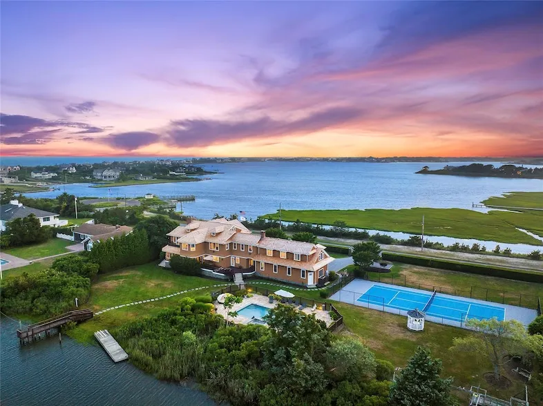 Welcome to the epitome of luxury waterfront living in Quogue Village, where magic meets reality. This exceptional estate, situated south of Quogue Street, boasts an unparalleled location that captures the essence of coastal charm. Comprised of two single and separate 1-acre lots artfully combined, this property offers a unique and irreplaceable opportunity. Greeted by breathtaking sunset views over Quantuck Bay at the front, and the convenience of canal boat dockage at the back, this residence embraces the allure of waterfront living in all its splendor. Nestled on the mainland, you'll enjoy the best of both worlds - a private oasis with easy access to all amenities. Spanning an impressive 6000 sq. ft., this magnificent home boasts 7 bedrooms and 7 1/2 baths across two floors. The first floor is an entertainer's dream, featuring a formal living room with a cozy fireplace and those mesmerizing sunset views. The open floor plan connects a gourmet kitchen and family room, seamlessly leading to a formal dining room through a stylish butler's pantry. Furthermore, two inviting spaces await at the rear - a four-season sunroom and an additional screened porch, both offering tranquil vistas. Ascending to the second floor, you'll find the true gem of the residence - a luxurious primary suite complete with a lavish marble bath and a private office space. Additional bedrooms throughout the house boast spectacular water views, effortlessly blending elegance and natural beauty. For car enthusiasts, the oversized 3-car garage ensures ample storage space for all your needs. Step outside to discover a regulation all-weather tennis court and a custom pool and spa with an automated cover - perfect for unwinding and indulging in the best of outdoor living. In summary, this extraordinary estate presents a once-in-a-lifetime opportunity to embrace the magic of Quogue Village and enjoy the ultimate waterfront lifestyle. Don't miss your chance to own this exclusive and incomparable piece of paradise., Additional information: Appearance:Mint,ExterioFeatures:Tennis,Interior Features:Guest Quarters,Lr/Dr,Marble Bath