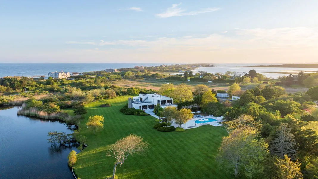 This stunning expansive property is located in the estate section of Southampton Village on Meadow Lane. With over 700+/- feet of direct frontage on Halsey Neck Pond and spectacular ocean views, Swans Crossing encompasses a 7,000+/- square foot home just across from the ocean and the Hamptons' finest beaches. This 5.6+/- acre sprawling property is perfectly positioned to enjoy spectacular waterfront wildlife, picturesque sunrises and sunsets. The long gated driveway leads to serene private grounds that include the main contemporary 5 bedroom 6 bath home, tennis court with pavilion, pool with spa, poolhouse with full kitchen, bath and 2 changing rooms with showers. Other outbuildings include two 2 car garages, one with full staff quarters and air-conditioned storage. There are also APPROVED PERMITS in place to build your own 10,000+/- square foot home of your dreams.