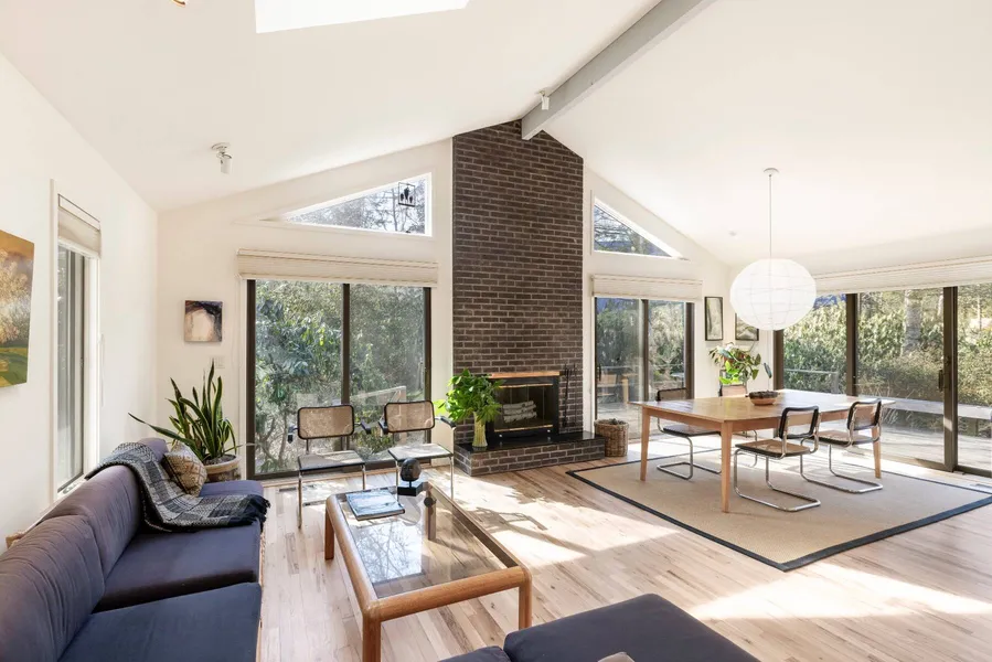 Located in the coveted Barnes Landing community, this tranquil 3-bedroom, 3-bathroom contemporary home offers 2,300± sq. ft. of thoughtfully designed living space. Clean architectural lines and a stylish entry foyer set the tone for this modern retreat. At the heart of the home, the great room features vaulted ceilings, a skylight, and a wood-burning fireplace, creating a warm and inviting atmosphere. A fully equipped cook's kitchen with a skylight is perfect for entertaining or quiet nights in. A comfortable skylit den with an in-wall sound system provides a relaxing escape. Sliding doors lead to an expansive deck, seamlessly blending indoor and outdoor living. The first-floor primary suite is a true sanctuary, complete with built-in closets and an ensuite bath featuring a steam shower for spa-like relaxation. A second first-floor bedroom and an additional full bath provide ideal accommodations. Upstairs, a sunlit bedroom with vaulted ceilings, a skylight, a walk-in closet, and a private bath with a romantic soaking tub under a skylight offers a tranquil retreat. Outside, the home is surrounded by published gardens with a Zen-like ambiance, creating a peaceful oasis, all enclosed by discreet deer fencing. A landscaped outdoor shower adds to the charm. There's ample room for a pool, but after strolling through the gardens, you might realize you don't need one after all. Just moments away, the residents-only Barnes Landing beach offers kayak racks, while Louse Point, Amagansett Village, and ocean beaches are just minutes away. This is the ultimate East End escape.