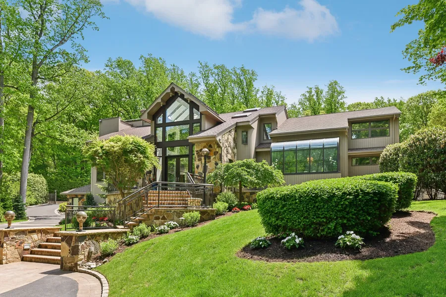A truly one-of-a-kind gated compound set on 2.4 lush meticulously manicured acres. This exceptional estate offers a feeling of tranquility and modern open feeling. Designed for those who appreciate high-end custom features and the finest in craftsmanship, this property offers an extraordinary living experience. This entertainer's paradise boasts an open and sophisticated living space designed for both relaxation and hosting. The dramatic two-story entry hall, with its grand double doors, sets the tone for the luxurious interior. High end custom systems throughout ensure comfort and efficiency. The expansive gourmet commercial-grade chef's kitchen is a culinary dream, equipped with top-of-the-line appliances and exquisite finishes. The magnificent primary bedroom suite serves as a luxurious retreat, featuring two separate bathrooms, a large seating area, a spacious walk-in-closet & spiral staircase to a roof top deck. 4 additional second floor bedrooms and 3 full bathrooms provide space for everyone to relax and unwind. An elevator provides convenience and access to all floors. The full basement includes a full home theatre, gym, sauna, climate controlled wine room, 2 full bathrooms & additional guest quarters. The grounds of this home are an absolute haven and a landscaper's dream come true with every planting thoughtfully situated. Designed for ultimate relaxation and social gatherings, this backyard retreat features a gorgeous in-ground pool, beautiful patios, surround sound speakers, built in BBQ, endless entertainment areas, cozy fire pit, hot tub & beautiful walkways surrounded by lush lawns, specimen trees and plantings. The separate pool house with large mahogany deck offers 2 full baths and additional living space, ideal for guests or a private hideaway. The resort like separate full bar is truly an entertainer's dream with every amenity and bi folding doors to a private seating area. You will never want to leave your own backyard sanctuary. Every detail of this property has been thoughtfully curated to provide a lifestyle of supreme sophistication and comfort. This unique estate offers an unparalleled living experience, blending high-end custom features & amenities with exceptional design and luxury. Don't miss the chance to own this exquisite property that you must see to appreciate.