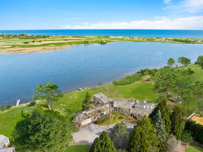 Beautifully sited directly on East Hampton's Hook Pond, this 1.69 acre property with dock has forever views over the pond, the Maidstone Club golf course, and the ocean beyond. Tucked at the end of a quiet private lane in the center of the village, the house has 6 bedrooms including a first floor primary bedroom suite with adjoining library. The heart of the house is the double height Alfred Scheffer-designed great room with antique beams, wide plank floors, extensive bookshelves and glorious views over the pond. A short distance from nearby Main Beach or the shopping district and restaurants of the village, 21 Hook Pond Lane has been lived in and loved by the same family for the past 55 years and is being listed here for only the second time since it was built.