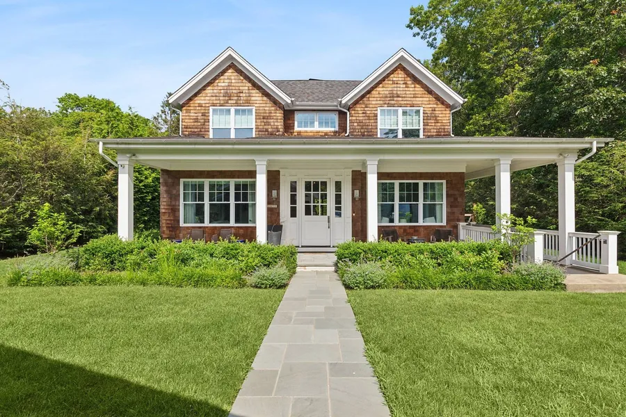 Located on a beautifully landscaped 0.61-acre lot in Southampton, this 4,099-square-foot double-gable shingled traditional home was thoughtfully designed and custom-built by Farrell. Offering seven spacious bedrooms and seven bathrooms, the home blends timeless architecture with modern luxury across three finished levels. A stately stone front porch framed by classic columns sets the tone as you enter. Inside, the sunlit first floor features an open-concept layout ideal for entertaining and everyday living. The chef's kitchen is outfitted with Caesarstone countertops, a central island with bar seating, and top-of-the-line Wolf and Sub-Zero appliances. A formal dining room adds an elegant space for hosting family and guests. The serene primary suite features a luxurious en-suite bath with a custom Caesarstone double vanity, radiant heated porcelain tile flooring, a deep soaking tub with a...
