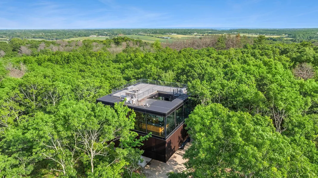 Secreted on 10 acres within a hidden, private Hamptons enclave, minutes from three of the most coveted East End villages, discover "SkyBox": a once-in-a-lifetime opportunity to live in a secluded, published work of modern art, an artist compound like no other. This award-winning Water Mill creation, by the world-renowned team at 1100 Architect, is a hillside sculpture floating effortlessly on close to 10 acres of the highest elevation anywhere in eastern Long Island, affording 360-degree views of lush farmland, the polo fields and the Atlantic Ocean. The home has 4 bedroom suites over three levels of carefully considered details and views from every window. The property also includes a sculptural pool pavilion and a professional clay tennis court that seem to emerge from their natural surroundingsm, plus there is potential opportunity for subdivision. SkyBox, with all its sylvan wonder and jaw-dropping views, refers directly to the Hamptons' history as a retreat for artists and creatives of all kinds. Now you can be one of them. SkyBox spreads out over two floors plus a foyer level, each floor becoming more lavish as you ascend towards the crowning jewel of the rooftop deck. The entry impresses with curved architectural elements, and this floor also encompasses a sophisticated thousand-bottle wine room with integrated tasting table plus laundry and a windowed flex space for a potential gym/4th bedroom. The bedroom level has a spacious primary suite with a separate dressing area and steam spa shower. There is a light-filled landing with a fabulous gallery lounge/media den, plus two spacious ensuite guest bedrooms, currently being used as art studio spaces. This floor is wrapped in an ingenious exterior fiberglass screening, filtering the light gorgeously. The floating staircase takes you up to a truly stunning upper living level, surrounded by floor-to-ceiling windows with motorized sun shades; there are treetop sky & water views in every direction. The central atrium provides dramatic interest, leading to a conversation den, the great room and formal dining. The open kitchen with breakfast nook has built-in cabinetry & luxury appliances. A spiral atrium stair is your portal to the rooftop deck, the ultimate feature of Skybox, with unbelievable panoramic ocean views, a built-in wet bar, and 560 square feet of entertaining space. Other areas of the property include the masterful pool pavilion, also designed by 1100 Architect, beautifully incorporating warm wood with the steel pergola and 15x50 heated Gunite infinity pool and separate spa, evoking a timeless feel of California modernism. There is a chic full pool bath here as well as a separate cabana lounge, outdoor kitchen, & fire pit. Just beyond lies the Har-Tru tennis court with courtside lounge, and a freestanding two-car garage. By far, this is the best value in the Hamptons for improved land with significant architectural pedigree, priced far below replacement value. Extensive expansion potential. The location is an East End trifecta: easy access to three prime villages, ocean and bay beaches, and farm fields. Living at SkyBox is like living in a breathtaking work of modern art: now it can be yours.