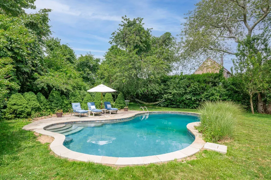 Nestled south of the highway in a highly coveted Southampton flag-lot location, 79 Middle Pond Road offers the ultimate Hamptons lifestyle. This serene and sun-drenched property is just 5 minutes from world-famous ocean beaches, world renowned golf courses and a short stroll to a beautiful bay beach, blending the best of coastal living with everyday convenience. Set on a generous .75 acre parcel, the property features a heated gunite pool surrounded by lush landscaping and ample patio space for lounging, dining, and entertaining. Whether you're hosting weekend getaways or enjoying quiet seaside mornings, this home is designed to embrace the relaxed elegance of Southampton living. An ideal location for beach lovers and nature seekers, all while remaining moments from village shops, fine dining, and marinas. Move in as-is , as a fabulous income generating rental or build your very own Hamptons estate .