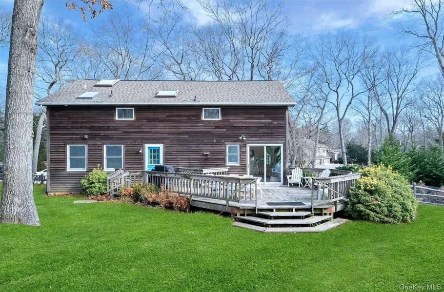 Embrace refined living in this charming residence nestled in the heart of Southold. Enjoy the expansive .75-acre grounds that provide a sanctuary of tranquility. Situated on a meandering hill, this home offers a serene and private retreat. The modern, chic interior is beautifully designed for comfort and style. The welcoming foyer unfolds into a spacious living room, flowing effortlessly into a quaint kitchen that overlooks the backyard and opens to a large deck, inviting you to enjoy al fresco dining. The formal dining area, with separate access to the yard, transforms entertaining into an elegant affair. The main level features a convenient bedroom with easy access to the living spaces and a full bathroom. Ascend to the upper level, where the grand primary en-suite bedroom awaits, complete with a new spa-appointed bathroom, vaulted ceilings, and new wood flooring, flooded with natura...