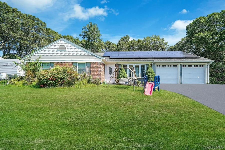 Welcome to 32 Summercress Lane, Coram – Your Dream Home Awaits! This beautifully maintained ranch offers the perfect blend of comfort, style, and functionality. Featuring 3 spacious bedrooms and 2 full bathrooms, with the primary suite having it's own private full bath. Vinyl flooring throughout with vaulted ceilings. Modern eat in kitchen with oak cabinets, granite countertops and stainless steel appliances, perfect for home-cooked meals and entertaining. Stay cool all summer long with central air, and cozy up by the fireplace during cooler months. Washer and Dryer setup. Additional highlights include gas heating, sewers, a generator hookup, and a 2-car garage for car enthusiasts. You also have a generously sized backyard with ultimate privacy, ideal for hosting gatherings, barbecues, or simply enjoying your own private oasis. Plus, the owned solar panels make this home energy-efficient and cost-effective. Longwood Schools. Close proximity to all major shops, and transportation. Don’t miss this incredible opportunity to own this gem in the heart of North Coram – schedule your private tour today!