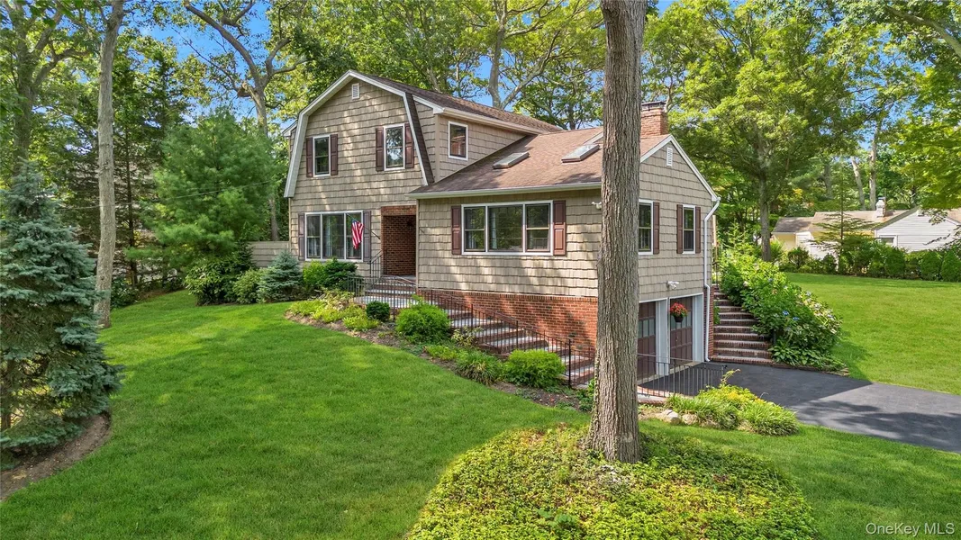 Charming Colonial set on a picturesque .75-acre lot in the heart of the historic hamlet of Fort Salonga. This structurally sound home offers the perfect blend of classic charm, modern comfort, and an unbeatable location. With 4 spacious bedrooms and 2.5 bathrooms, it is thoughtfully designed for both everyday living and entertaining. At the heart of the home is an expansive great room located above the two-car attached garage, featuring a soaring vaulted ceiling with skylights, a cozy wood-burning fireplace, and gleaming hardwood floors. This light-filled space is ideal for gatherings with friends and family year-round. The open-concept kitchen flows seamlessly into the great room and offers direct access to a bluestone patio—perfect for al fresco dining and relaxing evenings overlooking the serene rear grounds. The property boasts impressive curb appeal, with a gently rolling front lawn...