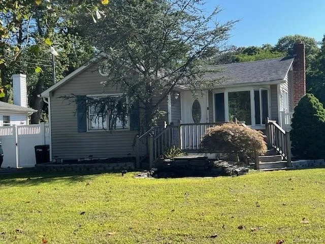 Low Low Taxes, DON'T miss out on this great 2/3 Bedroom, 2 Bath Ranch located in Mastic Beach. Featuring an updated kitchen with stainless steal appliances and sliding glass door to backyard deck, updated bathrooms, full finished basement with separate outside entrance, custom brick walkway to front deck, new white PVC fencing in the front yard and back deck, new burner added in 2021. Large property with deck and huge fenced in backyard with a beautiful waterfall garden pond.
