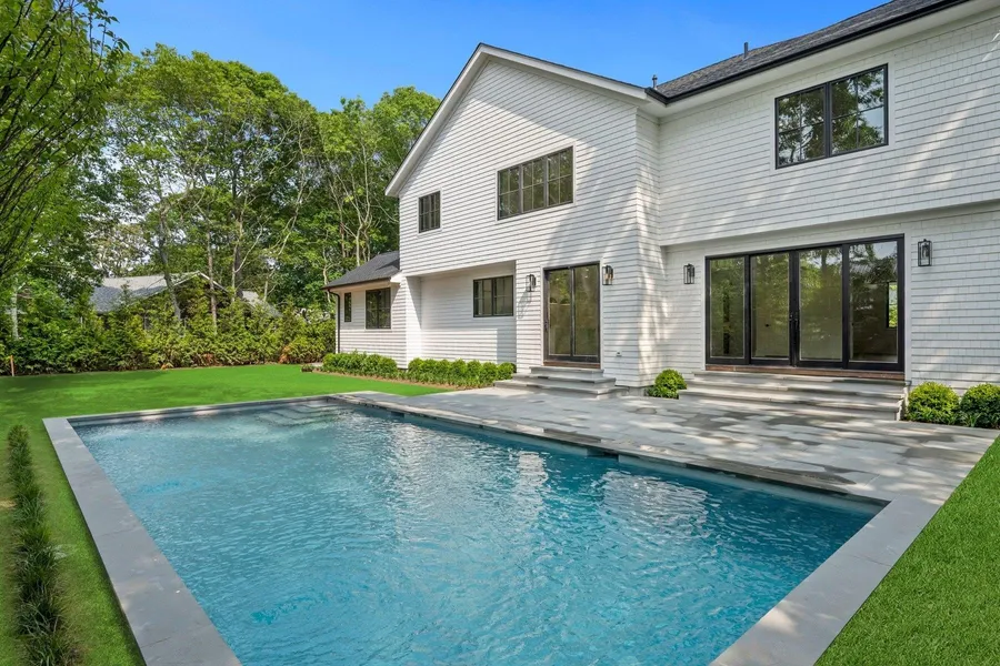 Flag Lot New Construction in Westhampton Beach by Topaz Builders. Experience the best of Hamptons living in this brand-new 2025 traditional-style home featuring 5 bedrooms and 4.5 baths. Designed for modern comfort, the open floor plan boasts a top-of-the-line kitchen with custom cabinets and Thermador appliances, an eat-in breakfast area, a spacious great room with fireplace, and a formal dining room, perfect for entertaining. A first-floor bedroom and a private office/den add convenience. The home also includes an attached two-car garage. Built with Marvin windows for exceptional quality, this home is filled with natural light. The 1,800 sq. ft. basement with 9 ft. ceilings, walkout stairs, and an egress window offers incredible potential to be finished with a home theater, gym, wine cellar, or recreation space. Step outside to your private oasis with a heated 16’ x 38’ Gunite pool, su...