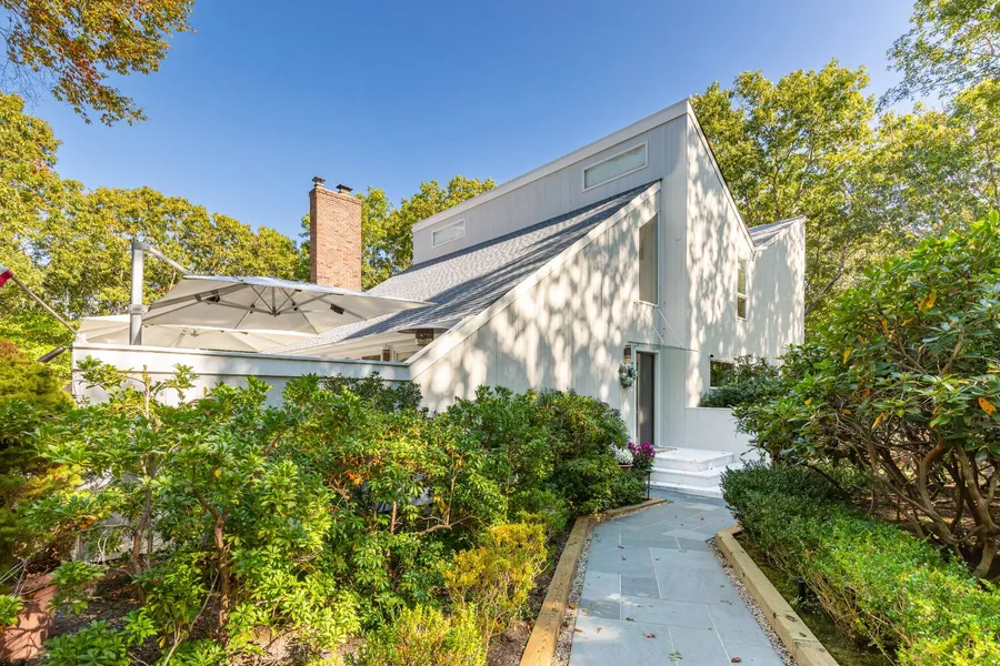 Welcome to your East Hampton escape, where every detail has been carefully curated for comfort, style, and effortless living. As you pull into the driveway, you're immediately welcomed by a lush, beautifully landscaped walkway and a striking contemporary Italian front door that sets the tone for what's inside. Step into a sun-drenched living space with soaring ceilings and a stunning brick fireplace-perfect for cozy evenings or entertaining guests. A wall of glass doors opens seamlessly to the expansive outdoor entertaining area, where a generous deck surrounds a heated pool, ideal for summer lounging. Just off the chef's kitchen, you'll find a screened-in patio and an outdoor shower that brings a touch of resort living to your everyday. This home features three serene bedrooms, including a magical double-height glass room that feels like a treehouse retreat, and a convenient first-floor...