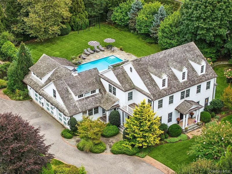 Privately set behind a gated entry on a maturely landscaped acre, just 65 miles from New York City, this custom-built estate located in East Moriches offers more than 4,700+/- square feet of refined living across three levels with an additional 1,300sqft finished lower level. Designed with historic architectural detailing and modern amenities, the home balances elegance, warmth, and functionality in every room. A dramatic double-height foyer introduces the residence, leading into elevated living space with 9' coffered ceilings on the main level, hand-plastered walls, custom woodwork, and hand-painted finishes throughout. The chef's kitchen is a centerpiece, complete with Viking and Subzero appliances, custom hand-painted flooring, two sinks, extensive counter seating, and an oversized breakfast room overlooking the grounds through floor-to-ceiling windows. Adjoining spaces include a butl...