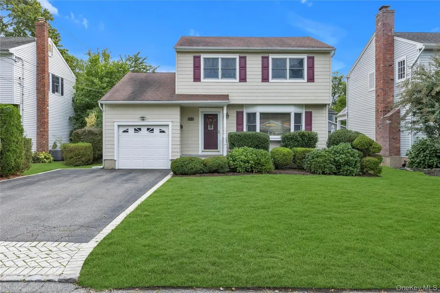 Greenlawn Village Colonial! This charming home features three bedrooms & 1.5 baths on a quiet village street in Harborfields. The front hall entry leads to the spacious living room with bay window & hardwood floors. Just off the living room is your dining room open to the updated center island kitchen with stainless steel appliances & granite counter tops. Enjoy the cozy den with access out to the fenced yard. A guest half bath completes the first level. The second level boasts a primary bedroom with dual entry bath, two additional bedrooms & walk in attic storage space. Additional features include a full lower level with laundry, utilities & storage, one car attached garage, gas heat, Andersen windows & CAC. Conveniently located close to Village shopping, restaurants, library and train station. Will not last!