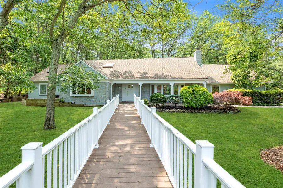 Melville - This stunning residence is nestled in the heart of the extremely sought-after neighborhood of Strathmore Hills featuring private Pool and Tennis Club, with-in the Half Hollow Hills School District! This sprawling and expanded Farm Ranch is elegant and inviting and has been extensively renovated in 2024 -2025, offering a blend of modern updates and luxury details! Boasting 5 bedrooms and 3 beautifully updated bathrooms, this home provides a bright, open floor plan with soaring ceilings, skylights and walls of windows over-looking the lush, scenic property. The main level of the home features a spacious Formal Living Room w/cozy wood fireplace and impressive Formal Dining Room with expansive windows. The expanded Family Room is designed for less formal gatherings and features a bar area and beautiful walls of windows overlooking the lush property. The updated Eat-in Kitchen offers white cabinetry, granite countertops, L-shaped Island, a large eating area, New Stainless Steel appliances including double oven and features soaring ceiling w/skylights. Off the Kitchen is a convenient Laundry/Mudroom with new Washer/Dryer, 5th bedroom w/closet (possible guest room or office) and access to the spacious 2 Car Garage w/plenty of storage and newly renovated driveway. On the opposite side of home, on the same level is the spectacular, expanded and NEWLY renovate King Primary En-Suite where you'll step into your own private sanctuary of relaxation and rejuvenation. The Primary bath transforms your daily routine into a spa-like experience featuring walk-in shower, free-standing soaking tub, double sinks and quartz counter tops. The lavish walk-in closet is a custom- built dream featuring built-ins and center, island w/draws, plus more. The 2nd floor features 3 additional ample Bedrooms all with plenty of closet space, Large double linen/storage closet and fabulously Updated Full Hall Bathroom. In addition, there is an extensive, convenient walk-in Attic boasting lots of storage space. The peaceful, lush property is .77 acre and provides a tranquil setting with professional landscaping and specimen plantings thru-out the property, including Inground sprinklers front and back. The scenic backyard features paver patio and sprawling flat, serene grassy area that great for play and entertaining, possible room for a pool, plus more. Just some of the additional amenities and updates include New Architectural Roof (less than 1 year) & gutter guards, New skylights, New Interior & Exterior Lighting, New Doors, New plumbing including Riobel and Kohler fixtures and separated heating system for Primary En-Suite. Updated Andersen Windows, Central air conditioning, hardwood and tile Floors, gas heating, electrical, High Hats, plus much more. Experience the perfect blend of elegance and comfort with newly renovated features and scenic views that create a truly exceptional luxury way of life.