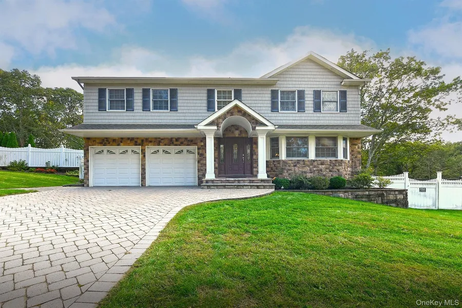 Welcome to 35 Columbus Avenue, Kings Park. A beautiful 4-bedroom, 2.5-bath Brookfield Colonial featuring a versatile bonus room-perfect for a 5th bedroom or home office. The home offers a spacious entry foyer, formal living room, and formal dining room. The cherry wood eat-in kitchen boasts granite countertops, stainless steel appliances, gas cooking and plenty of cabinetry. Enjoy the cozy family room with built-ins and a gas fireplace. The primary suite includes a custom walk-in closet and an updated bathroom with separate marble vanities and a large porcelain shower. Additional highlights include nicely sized bedrooms, a newly finished basement with laundry area (including a new washing machine), full bathroom, and ample storage. Step outside to your private backyard oasis with an in-ground saltwater pool, updated heater and filter, large brick-paved patio, professional landscaping, retaining wall and full fencing. A two-car garage, paved driveway and lovely curb appeal complete this stunning home.