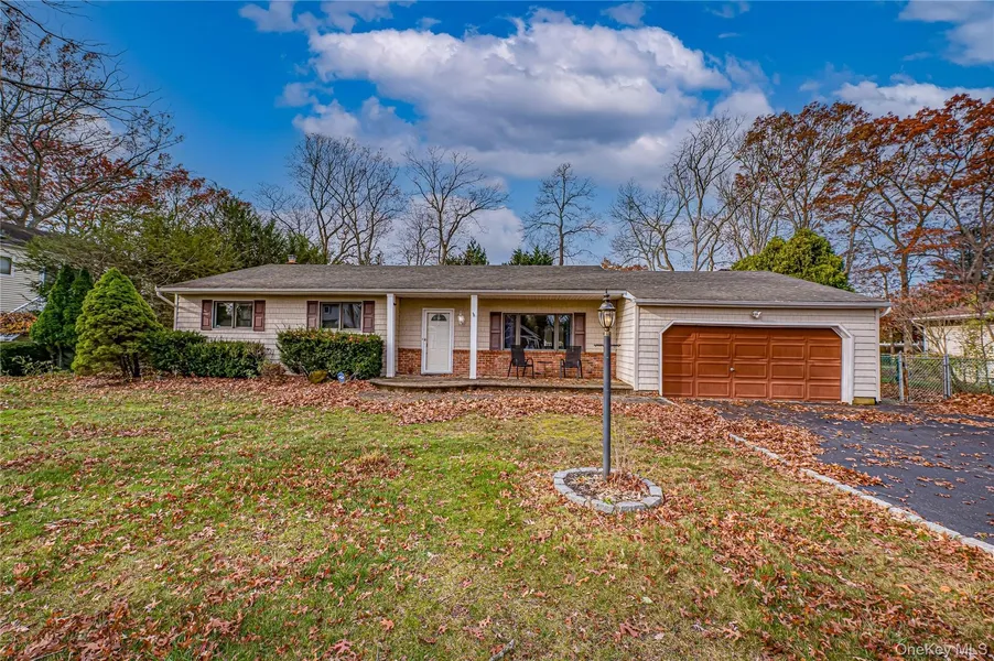 Tucked away on a quiet dead-end street in the Smithtown School District, this beautifully maintained ranch offers comfort, privacy, and easy living all on one level. Wonderful location, close to shopping, restaurants and parks. The layout features a spacious Formal Living Room and Formal Dining Room, perfect for hosting holidays or relaxed gatherings. The Eat-In Kitchen and cozy Den with a wood-burning fireplace, creating a warm spot for everyday living. The private wing includes a comfortable Primary Suite, two additional bedrooms, and a full bath. A partial basement provides extra storage or hobby space, and the attached two-car garage adds convenience year-round. Outside, the fenced backyard feels like your own retreat with a new deck where you can unwind, entertain, or simply enjoy the peace and quiet of this location. Updates include Gas burner (4 yrs old); Gas water heater (3 yrs o...