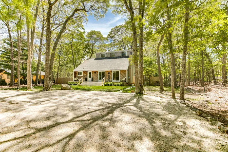 In a private beach community, this versatile Hamptons escape is easy to get excited about. Renovated in 2020, the charming home awaits your finishing touches to create your sanctuary by the bay. On nearly half an acre with an inviting front porch, this 2-level home has 1,600 +/- sq. ft. of living space (plus a finished lower level), 4 bedrooms, 2 full baths, and room for a pool. The modified Saltbox architecture offers ample natural light from skylights and a double-height ceiling in the great room. Ready for contemporary luxury living, this open and inviting space is flanked by a wood-burning fireplace on one side and a recently renovated eat-in kitchen on the other. A convenient pantry/mudroom leads to the backyard via a French door. Two bedrooms, one with walkout egress, share a full bath on the main level. Up the charming shiplap-clad stairs and banister, find 2 well-sized bedrooms t...