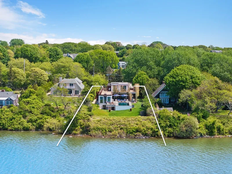 Experience elevated waterfront living in this newly constructed modern residence overlooking Montauk's Fort Pond. Designed with refined simplicity, the home showcases clean lines and an authentic use of materials that create a quiet sense of sophistication. Set on a picturesque ±0.54-acre waterfront parcel with 75 feet of frontage, the property offers approximately 7,141± square feet of living space across three thoughtfully designed levels, with 7 bedrooms and 8.5 baths. A striking concealed raw-iron entry and tranquil Zen-lined approach lead to a dramatic double-height foyer illuminated by skylights and sculptural masonry elements. The chef's kitchen opens seamlessly to the dining and living areas, where expansive walls of sliding glass doors create effortless indoor-outdoor flow. The main level features three guest suites, each with en-suite baths and private garden patios. The second...