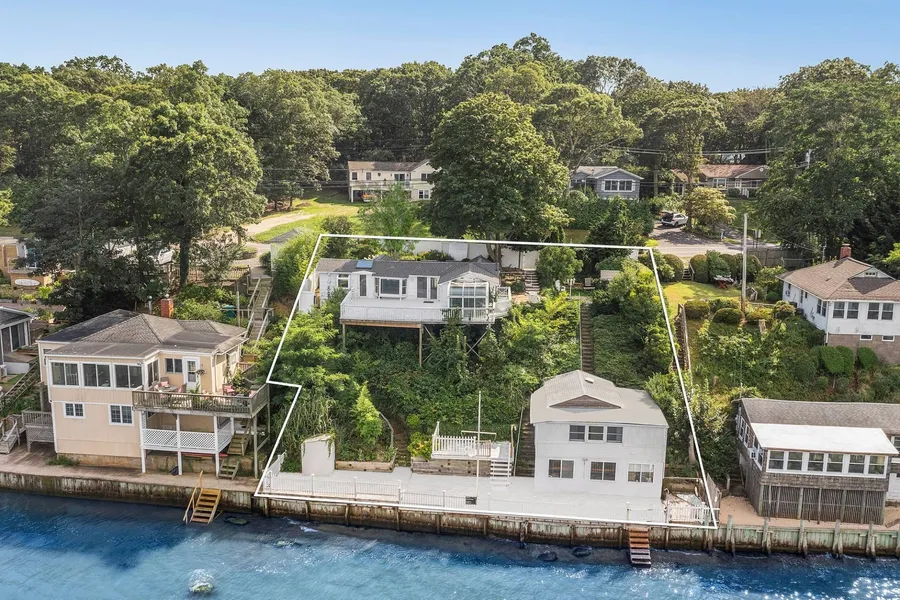 Waterfront Views of the entire coast of North Haven, the full length of Long Beach, with an exacting view of the July 4th Fireworks over the iconic bridge to Sag Harbor. Main House plus legal guest cottage included. Two houses include four bedrooms, 3.5 baths... all bulkheaded above the Bay, or in the case of the guest house, on the beach. Fish, Ski, Snorkel, Stand Up Paddle, BBQ, Entertain... or not. Seriously priced to sell, move in for summer 2025, and because this investment carries the day, it works as a remote office for the live-work idea. There are two houses here, both with stunning views, they don't get more impressive. Room for at least 5 cars and all moments from hamlet restaurants, Cromers market, Serene Green farm stand & Sag Harbor's beautiful Long Beach where swimming starts in the Hamptons because the Bay warms up e see it to believe it. New Survey and CO for a perfect s...