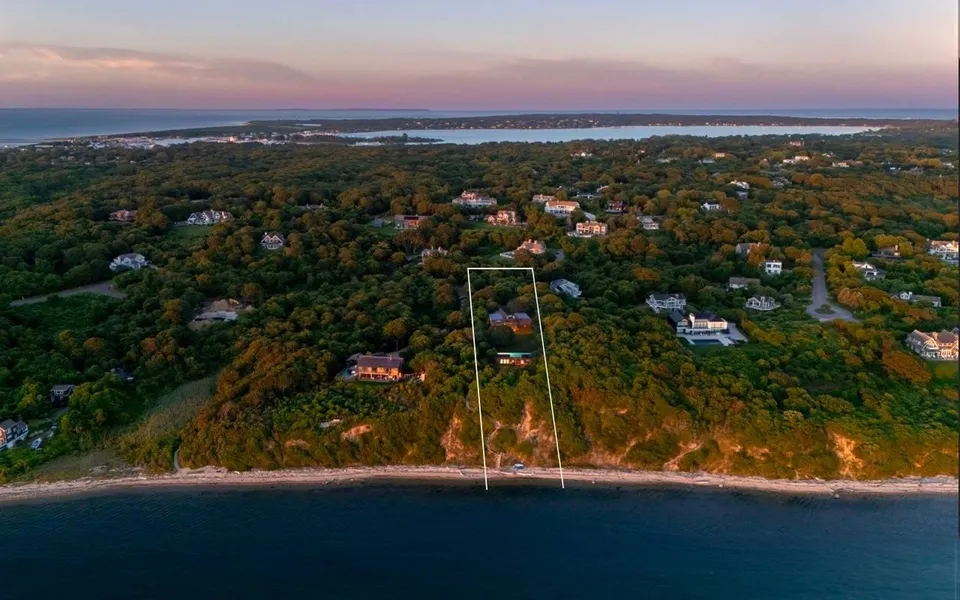 Set on two pristine west-facing acres with +/- 200 feet private bay frontage, and deeded access and deep water mooring rights on Fort Pond Bay, this masterpiece offers a rare opportunity to own a striking architectural home surrounded by natural beauty. Framed by dramatic sunset views, the residence is crafted with hurricane-rated construction and wrapped in rich mahogany, cedar, and sustainably sourced cumaru-designed to endure and impress. Inside, reclaimed white oak floors and exposed Douglas fir beams complement expansive walls of glass, creating a warm, light-filled retreat. The custom Boffi kitchen is equipped with Miele and Gaggenau appliances, a walnut and stainless steel island, and an effortless indoor-outdoor flow to dining and living spaces that showcase sweeping bay vistas. With six bedrooms and four bathrooms, the home provides both privacy and comfort. Every detail-from Waterworks tile to curated designer fixtures-reflects thoughtful craftsmanship. The serene primary suite opens directly to the outdoors, while guest rooms are bathed in natural light and quietude. The outdoor spaces evoke a private resort experience, featuring a 50-foot ozone pool, a pool house by Turkel Design, a full outdoor kitchen, and a rooftop deck perfectly positioned for sunset views. A private path leads directly to the bay-ideal for paddleboarding, kayaking, morning swims, or docking at your mooring. State-of-the-art smart systems include Sonos audio, Lutron lighting, iAqualink pool control, five-zone HVAC, and RainMachine irrigation-ensuring ease, efficiency, and year-round comfort. A true waterfront sanctuary where modern design meets timeless serenity.