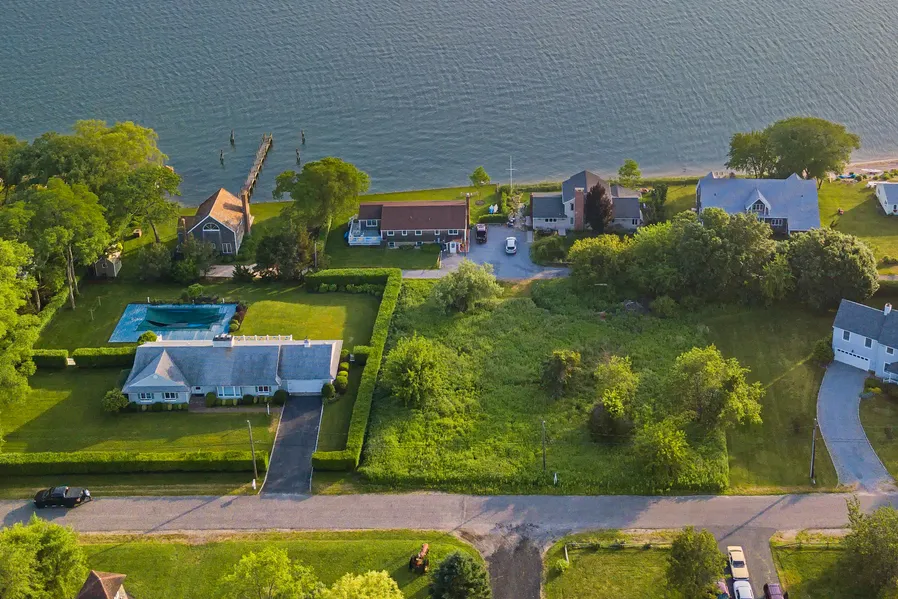 Orient Village half acre lot with waterviews and deeded sandy bay beach rights with BOH, Building & DEC permits in place. This village location is not in a FEMA flood zone and is shovel ready with approvals in place.