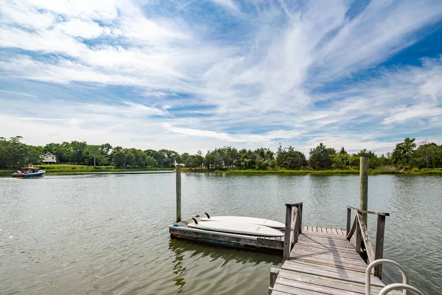 Enjoy sunset views from this gorgeous property with 200 feet of frontage on Genet Creek, the only protected, deep-water inlet in North Haven with open access to the bays and ocean. The deep-water dock can harbor a 40-foot boat. Enjoy the existing home as is, with your own tennis court, or spend as much time as you need in this pleasant setting while you plan your dream home. The 1.4 acre lot can accommodate a 6,058 s.f. main house with an additional 908 s.f. for pool house or garage with room for pool. The existing house has two spacious bedrooms - both the primary and the guest area are en-suite- three baths, living room with fireplace, dining area, full open kitchen, and a screened in porch which changes to a glassed in area for cool weather use. Currently the property features a sunken all-weather tennis court, stunning landscaping and incredible views over the water, which can be enj...