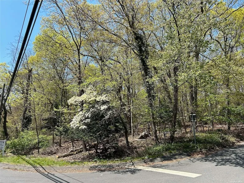 Wooded 0.68 Acre Vacant Lot in Stony Brook, N of 25A, Irregular shaped with 401.4 frontage on N country, 91.1 frontage on Whitford Rd, B-1 Zoning, Variance needed,