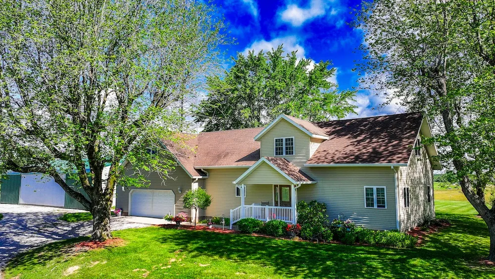Stunning 4br,2ba custom Cape Cod home, entering the home, you are greeted by a grand entrance featuring a cathedral ceiling and wooden banister staircase. When entering the living room, you will notice the beautiful tray ceilings and feel the cozy atmosphere. The kitchen is fully custom, showcasing Amish built hickory cabinets and granite countertops as well as a large eat in island. Off of the kitchen, you will find a formal dining room with French doors leading to the back patio, which offers a peaceful view. The main bedroom and bathroom are located on the first floor for convenience and privacy with the main bedroom boasting a large walk-in closet. The master bath features a double sink and walk-in shower. Upstairs, you have the other three bedrooms, all offering plenty of personal space. The second bathroom is also located on the second story and lends its own beauty to a granite vanity and custom tile floor. In addition, there is a large bonus room upstairs that would be perfect for a trophy room or game room and offers a beautiful overlook to the entrance of the home below. The home also offers a finished 2 car attached garage with convenient entrance into the kitchen. Three large pole barns are at your disposal as well, with one set up for livestock, complete with a lean-to, one used for machinery storage, and the third is an absolute gem. This pole barn is fully finished on the inside with laminate wood flooring, finished drywall, bathroom, and kitchen. The possibilities for this building are endless, from income-producing to entertaining. The 58+/- acres that make up this farm are as unique as it gets. This ground lays big! It's ready to go for livestock, with fencing in place. You will have no problem in the spring catching fish and finding a mess of mushrooms, all within a short walk of each other. And that is credited to the stocked pond and "Mushroom Hill". And all of that can be done while taking a break from chasing longbeards around the pasture. When the winds start to change and the air gets colder, you can switch gears to waterfowl and deer. On the property, you have a flooded slough complete with a duck blind and a trail system leading right to it. There are 13 income producing tillable acres on the property which also make for another hunting destination. This property has been an amazing deer-producing farm for the family for over 45 years, and with some small additions, this is a top-level deer producer. This one is unique, folks, whether you're interested in livestock, leisure, recreation, fishing, hunting, or just simply want room to roam and unwind. This is one of those unique tracts that is limited only by your imagination.