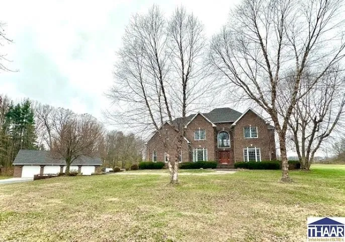 This exquisite, all brick home is perfectly situated on 9.95 beautiful, rolling acres making it feel like a secluded country retreat, yet it offers easy access to everything. The stately feel of this gorgeous home starts the minute that you drive up the long, winding blacktop driveway & see this large dream home accompanied by a 4 car detached all brick garage, & 3 car attached garage. When you enter into the front door you are immediately welcomed by soaring ceilings, 2 story windows, & an open, winding staircase creating a grand entrance that leads into gorgeous formal living & dining spaces w/ spectacular country views everywhere you look. The family room is huge & could double as a theater space or recreational space for everyone to hang out & play. Upstairs you will find 4 large BR's- 2 have a Jack & Jill bath w/ large closets (don't miss the 1 with a staircase going up to a 3rd story adorable little room that could be a playroom-it is so cool,) 1 has its own private en suite bath, & the primary suite is amazing w/ a double sided fireplace into the exquisite bathroom where you can enjoy a fire as you soak in the huge jet tub. The walk-in tile shower is gorgeous, the walk-in closet is huge w/ an additional small closet off each side of it, & there is a sitting room area that could be a nursery or just a great place to cozy up w/ a good book. The finished basement has a kitchen/bar area, large fireplace, & lots of room to hang out. Perhaps my favorite spot on the property is the stunning covered back patio complete with a wood burning fireplace, wood ceiling, views galore, & it continues out to a new patio that is open to the gorgeous country views. This is truly a remarkable country estate that you do not want to miss!