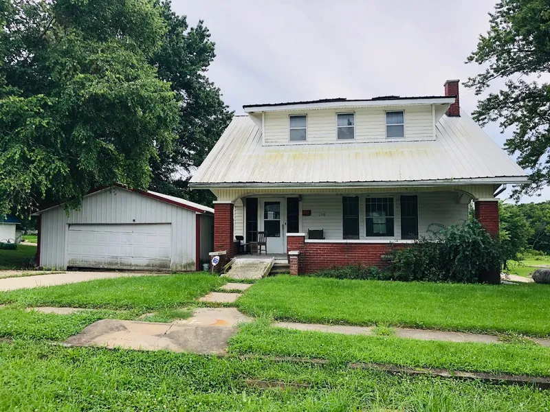 Lots of character in this 1.5 story home with large front porch, back deck, hardwood floors, and metal roof. The main floor includes a living room with fireplace, dining room, kitchen, and half bath. Upstairs has 3 bedrooms and a bathroom. Full unfinished basement with laundry hook-ups. Situated on a corner lot that includes a 2 car detached garage.