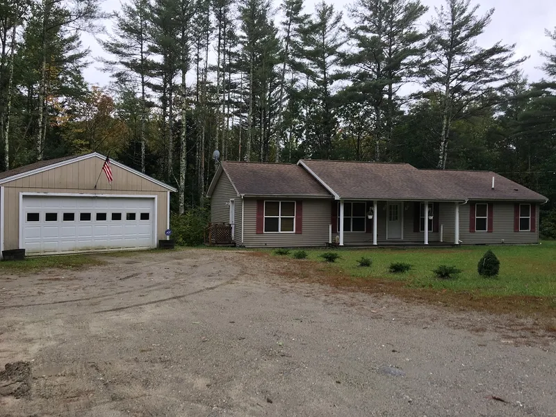 Offering a 2005 ranch style home with 7 rooms, 2 bedrooms, plus den/office with two baths on the first floor. Full walk out basement and a detached 2 car garage and 5.6 ac of land. SHome is open concept with hard wood floors,vinyl,carpets ,and did I mention a deck off the dining room area.