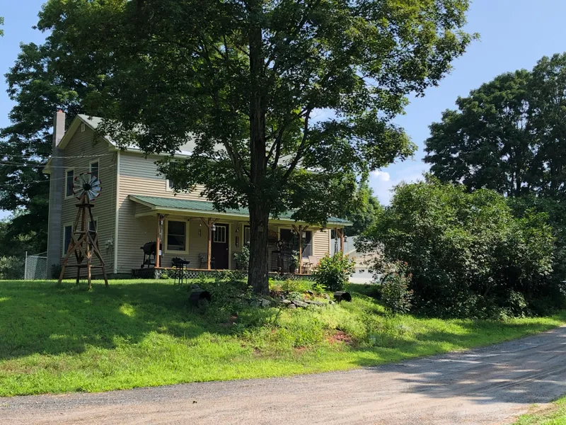 Enjoy living in the country and have the second apartment help pay for your living expenses. Lovingly maintained two family on over two aces. First floor unit has two more finished rooms in the lower level. Great country kitchen with updated appliances. Second floor is another two bedroom apartment with it's own separate entrance. Easily converted back to a single family home. Inviting farmer's porch to while away the summer evenings. Extra large garage with workshop and room for 3 cars. Separate pole barn for two more cars. Tons of parking. Two raised flower beds and one is hydroponic. Oil baseboard hot water heat and the first floor is also heated by a pellet stove. Blueberry and blackberry bushes. Large 5' dog pen with mats attached to the house and has its own water spigot. Enjoy more summer evenings in the gazebo that has electricity in the backyard.