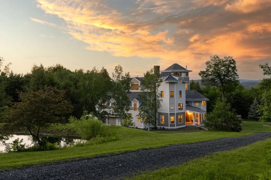 This unique splendidly renovated contemporary home features a sprawling floor plan, an elegant display of design, fine craftsmanship, and placed high on the top of a Southeast facing ridge. Straddling Tuscan and Italian influence and Traditional New England building styles, this home boasts large bedrooms and abundant gathering spaces, and an observation/viewing tower that crests high above the home. A redesigned kitchen and breakfast nook, modern wood composite flooring, wood and pellet stoves, radiant heating, and rebuilt woodworking throughout the home. A beautifully done renovation that must be experienced in person. Placed on 103 acres of pristine property with a large swath of woodlands, multiple ponds, riding and hiking trails, and situated overlooking the Green Mountains across the valley unfolds at your feet. Perched in the hills of Plainfield and conveniently located in the Upp...