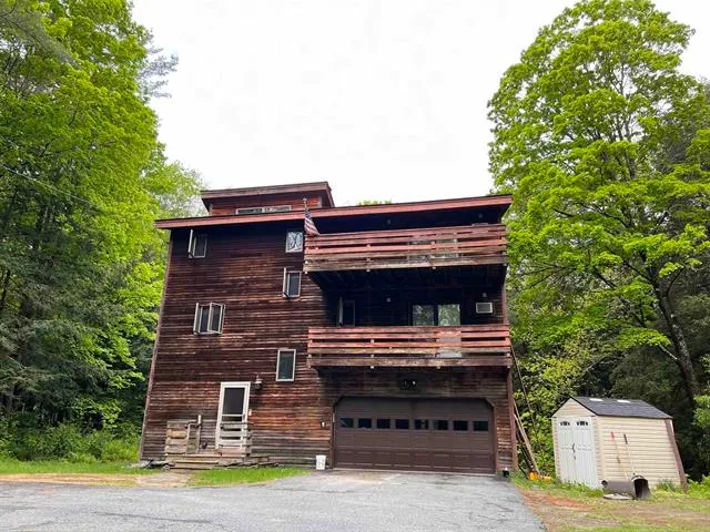 Private in town hilltop setting and uniquely designed home. Three floors of living space. Open concept main floor with large kitchen, dining and living room. Primary bedroom has bath and walk-in closet and sliders to one of the many decks. Large two car garage. Newer Standing seam roof and Buderus boiler. Delayed showings until June 1, 2022