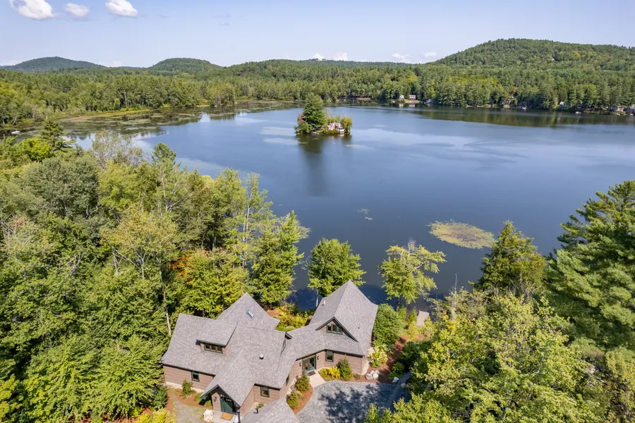 Lazy Bear Lodge on Perkins Pond is a turn-key 4 bedroom, 4 bath Adirondack style home with exceptional construction and d??cor. New features include a finished second-floor primary ensuite bedroom with a 3/4 bath, cozy reading nook, new well, lighting fixtures, finished gym, landscaping, solar tubes, and upgraded appliances. No detail has been missed. An open floor plan on the 1st floor features a dining area, kitchen with a granite island, soapstone countertops, and stainless-steel appliances. A large family room with a central stone hearth propane fireplace, bright floor-to-ceiling windows, and a 1st floor primary ensuite bedroom with a handicap-accessible shower, walk-in closet, and private deck. A separate living room with cathedral ceiling, propane stove, and sunroom with retractable door, perfect for all seasons. Work from home with lake views in the office nook. 1st floor full bathroom attached laundry room. The lower level of the house has a den with exercise equipment, two bedrooms, a large 3/4 bathroom, and access to utility and storage space. The oversized two-car garage could fit 4 vehicles and includes a finished gym with a propane stove. Enjoy lake life during all seasons. 150 feet of frontage with a 16-foot removable dock. 15 minutes to Vail Resorts Mount Sunapee Ski Resort and Adventure Park. 20 minutes to downtown New London with Summer stock theater, restaurants, shopping center, I89, and much more! 2 hours to Boston. A truly bucolic New England retreat.