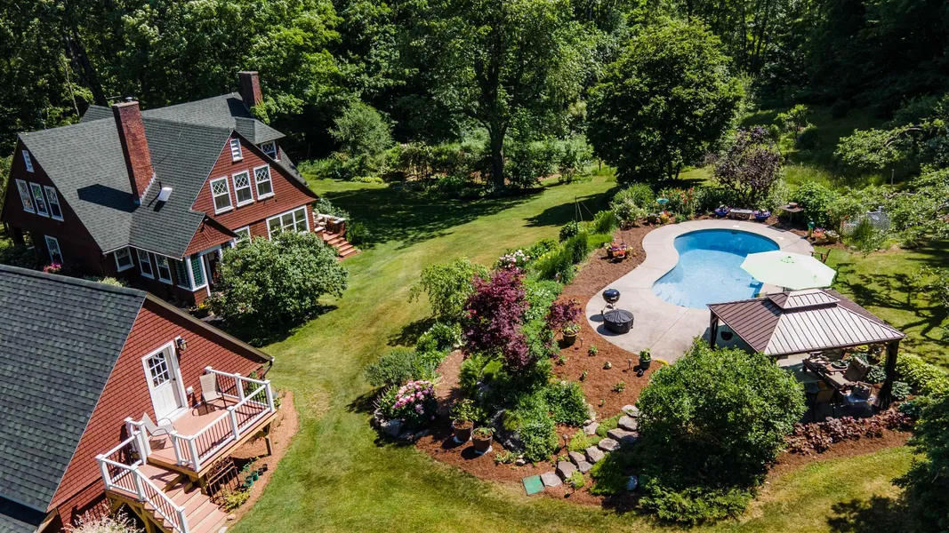 “The Mary Stevens Cottage,” a prestigious one of a kind home, was designed by Peabody and Stearns. No spared expense to build the house: Cedar shakes, quarter sawn southern pine floors, windows with wavy float glass, and diamond lattice moldings. You will be greeted by the enormous covered front porch, perfect for entertaining or relaxing in the custom built teak front porch swing, or by one kitchen porch custom built with Trex decking. Prepare to be enchanted as you enter the kitchen, featured on the cover of “New Hampshire Magazine,” a kitchen that embodies elegance, with beautiful custom built cherry birch wood cabinets, granite countertops with a custom granite farmers sink, top of the line appliances. No detail is left unconsidered. Both bathrooms still have their original sink, first floor a modern tiled and a glass block custom shower, and in upstairs bath a 7 foot claw foot tub. In addition, three working fireplaces,and many updates throughout the property, new roof, septic system, heating system, electrical, bar, television/playroom/den in the basement, 2 car garage with a Trex deck. At the end of the day, cool off in the in-ground pool or wander in the vegetable flower garden, or under the numerous fruit trees. Conveniently located, close to Mount Sunapee Vail resort, Lake Sunapee, to many amenities, ATV and hiking trails, the covered bridge over the Sugar River offering great swimming, kayaking and great fly fishing. A rare find indeed!