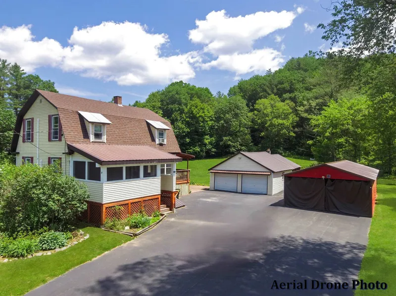 Thoughtfully cared for and freshly painted, this inviting 3-bedroom home offers the perfect blend of comfort, charm, and functionality—set on 7.77 partially wooded acres. Inside, you’ll find year-round comfort with mini-splits on both levels, and a beautifully remodeled first-floor bath featuring a luxurious soaking tub and walk-in shower. A convenient half bath upstairs adds to the home’s thoughtful layout. Entertain with ease in the formal dining room and spacious living room, or relax in the cozy alcove beside the pellet stove—a perfect reading nook for quiet evenings. Outdoor living is just as inviting, with a private back deck and patio ideal for summer gatherings, and a charming screened porch out front perfect for enjoying peaceful mornings. The expansive yard invites gardening, leisurely strolls, and frequent visits from local wildlife. The property also includes multiple outbuildings, a barn, and two garages with space for up to six vehicles—providing ample room for storage, hobbies, larger projects, child's fort or chickens. A newly installed Generac generator adds peace of mind, ensuring you're never without power when it matters most. Offering the best of both worlds, this home delivers the serenity of country living while being just minutes from local shops, restaurants, a hospital, and I-91. A truly special property with space to spread out, modern conveniences, and timeless appeal. Open House June 28th 11a-1p