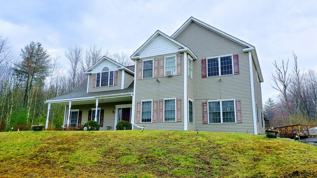 A classic Colonial provides entrance to this splendid country living, located across from the Silver Lake and lake access nearly 60 acres of rolling property with seasonal views. This special Home features 5 bedroom 3.5 baths, includes master sweet with a sitting room,walk in closet, bath with Jacuzzi tub, additional 3 bedrooms, full bath on the 2nd level. 5th bedroom /office is on the 1st level, eat in Cherry, spacious kitchen with pantry, formal dining room, living room with a cozy wood stove, to get off the chills in the evening, another living room, sun room with french patio door. An expansive basement level includes recreation room, European sauna with sitting room and full bath with shower. Insides amenities include hard wood flooring, acrylic floor finish in the basement, designer walls and ceiling. Outside amenities feature a magnificent covered deck for the rainy days and open decking to enjoy sunny days, in addition there is a covered hot tub. This land is beautiful, not far from the town, lake access to Silver lake across. You may be able to subdivide this land for the future development,or keep it forever, as a private large parcel.