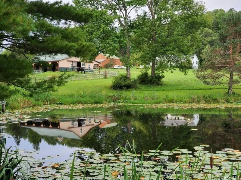 3D tour upon request! Equestrian! Come to the Catskills and bring your horses to this versatile horse farm. The scenic 77 acres boasts fenced-in paddocks, trails, ponds, and views. Suitable for recreation (snowmobiling or four-wheeling) or an income-producing horse farm. Store your hay and equipment in the hand-hewn barn, keep your horses in the state of the art year-round barn with birthing stall and tack room. There are 4 run-in sheds, 3 ponds, 6 fenced pasture, hay barn and 2-car garage. The 4 bedroom, 3 bath one-story home has a view catching wrap-around deck and a gourmet custom built kitchen with Woodmode cabinetry, hickory wood floors, a Wolf six-burner gas stove and a center island with quartz countertops. The separate dining area flows into a spacious living room with lovely brick fireplace. Central air and hardwood floors throughout with main level baths have radiant heated flo...