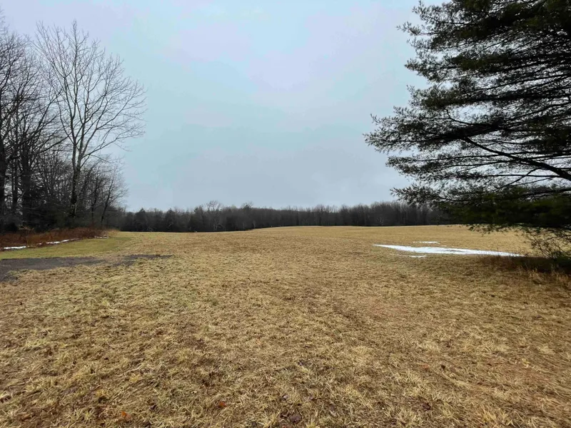 The acreage consists of open fields which slope down to the back of the property which is wooded. The property includes frontage on two roads for a total of 1,000 feet of frontage.