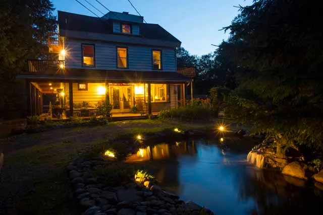 Riverfront family or artists compound. Amazing property is perfect for large family, or artist musician retreat. Room for everyone. 4 buildings total all lovingly restored to code. Main house is 5 bedroom 2 bath, trilevel home with wrap around porch and chefs kitchen with 1950 sq ft. of living space. Wonderful three sided stone fireplace, exposed beams, beautiful Brazilian cherry hardwood floors throughout, and a custom Brazilian staircase. Balconies off bedrooms. 6 person Thermospa Park ave, Hot tub on the back deck, with the babbling river right next to you. Perfect place to relax. Additionally there is a 4 bedroom 1800's home, with porch overlooking the river, currently used as an inn. Would be a fantastic guest house. In restoration its original character has been kept, and is just a wonderful space for an extended family. Beautiful building , with a European flare, currently used as...